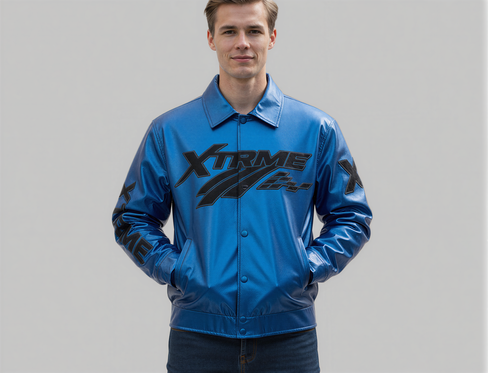 The XTRME Royal Blue Racer Jacket delivers bold attitude, clean graphics, and high-impact streetwear energy. Designed in a striking royal-blue tone, this jacket blends motorsport aesthetics with the signature identity of the brand.